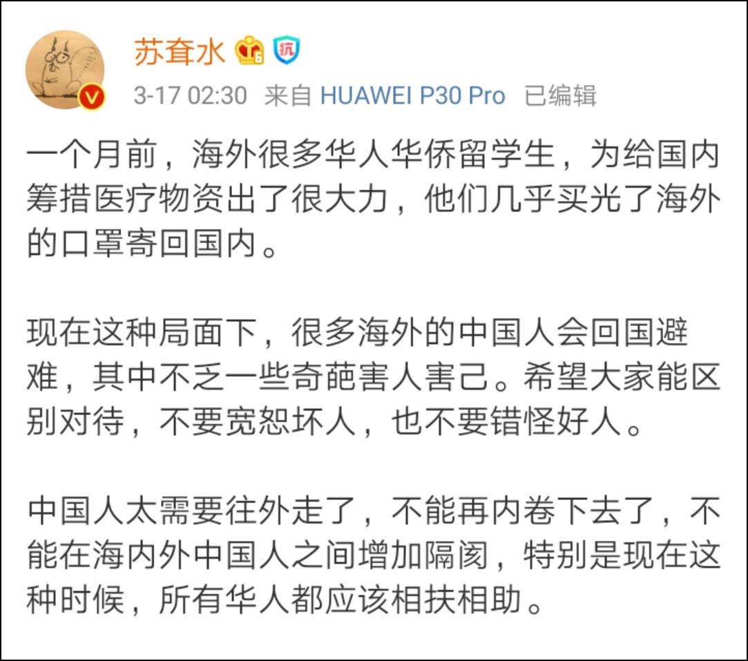 也有網友表態,其實回國並不一定是明智的選擇,希望留學生、海外華人能夠積極配合當地政府的防疫措施進行居家隔離,只要不出門基本上就沒有感染的風險。