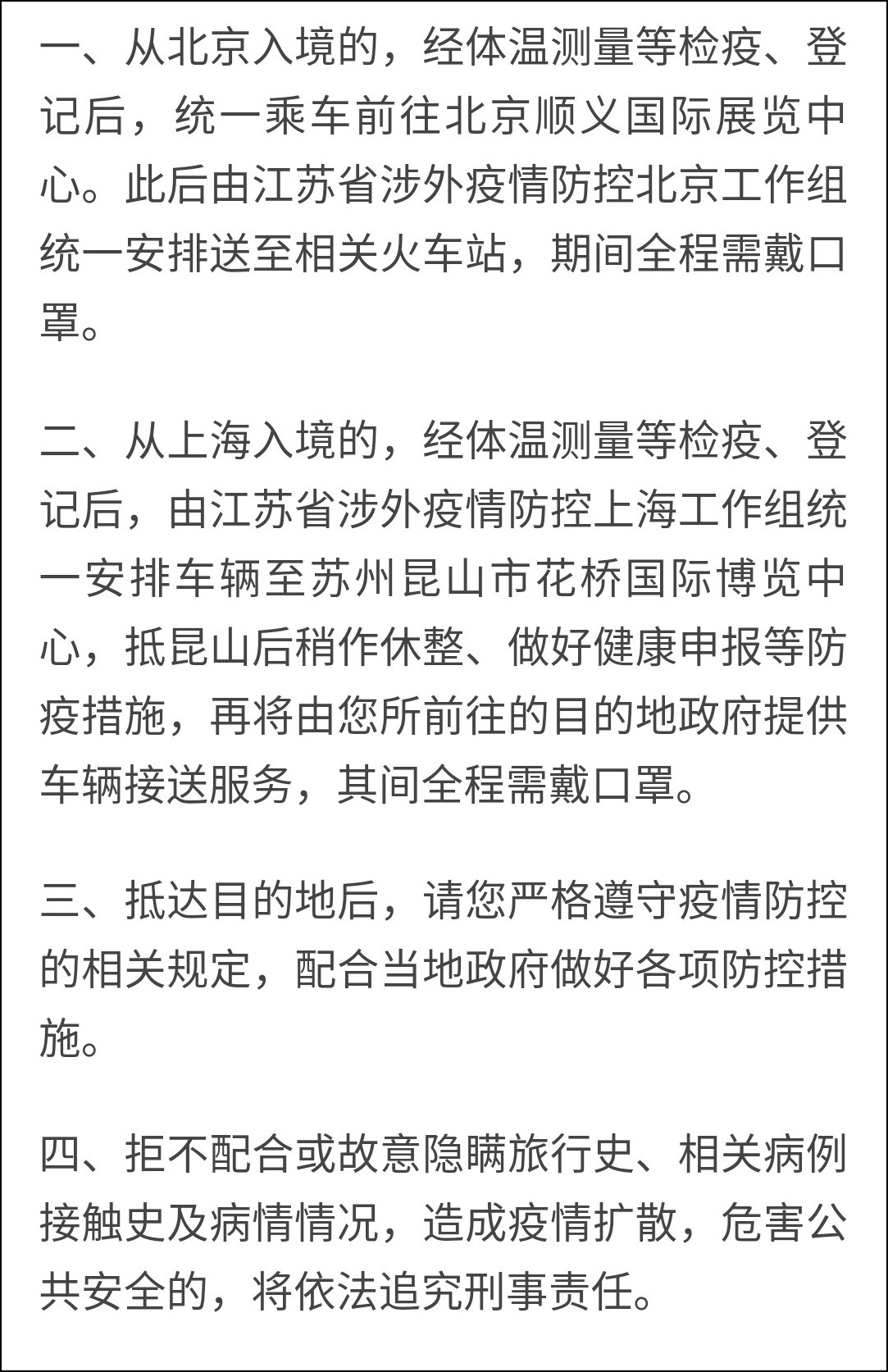江蘇省發佈《從北京、上海入境來返江蘇旅客告知書》