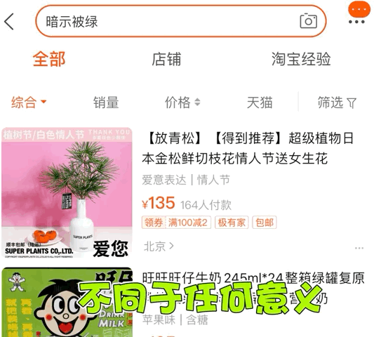 淘寶搜“暗示被綠”還真的能出來青松???這什麼大數據啊