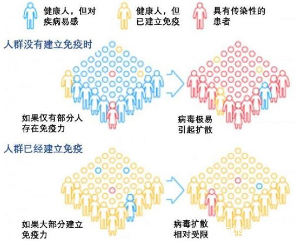 首先看下什麼是羣體免疫,羣體免疫(herd immunity或community immunity)又叫做社區免疫,也就是當足夠多的人對導致疾病的病原體產生免疫後,使得其他沒有免疫力的個體因此受到保護而不被傳染。羣體免疫理論表明,當羣體中有大量個體對某一傳染病免疫或易感個體很少時,那些在個體之間傳播的傳染病的感染鏈便會被中斷。