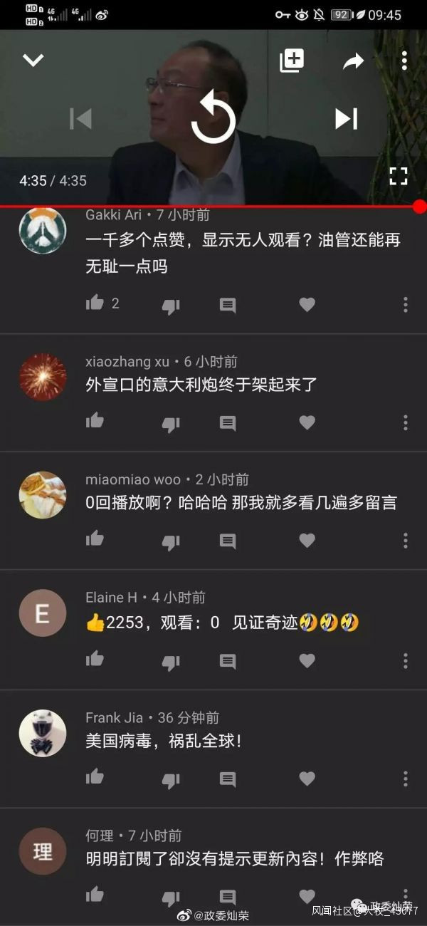 政委燦榮:今天,政委在youtube遇到一件怪事_風聞