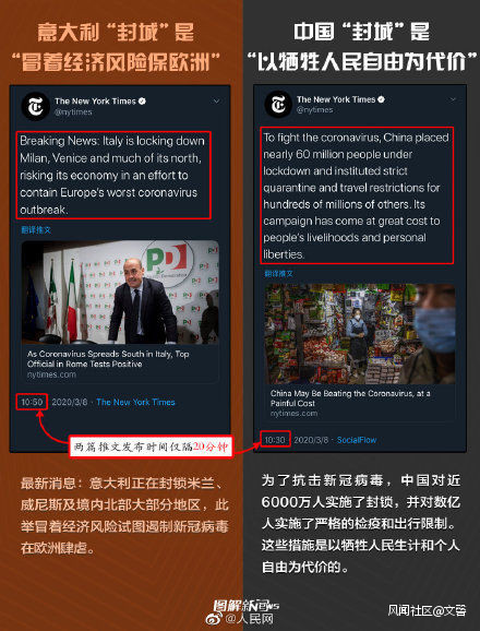 在就新冠病毒這個具體案例引發的對策探討時,人們發現,在認識、理解和評價中國抗擊新冠疫情各個階段,包括早期應對中出現的疏失等言論上,一些人使用的標準是雙重的、截然相反的:在評價中國的對策和舉動時,他們的標準是“一條生命都不可以被忽視”;在評價英國等國的對策時,他們的標準是“為了達成目標,犧牲若干百分比的人口是可以被接受的,有科學依據的,合理的,符合英國國情的。”