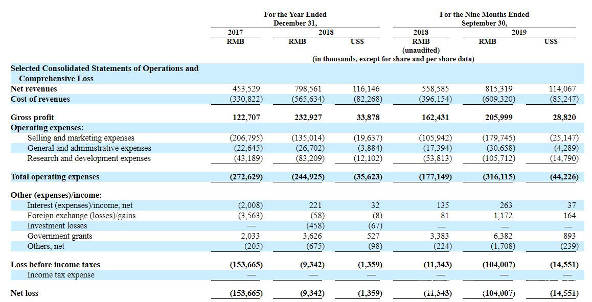 荔枝招股書內容顯示,2017年、2018年和2019年前三季度,荔枝淨利潤虧損分別為1.54億元、930萬元、1.04億元。