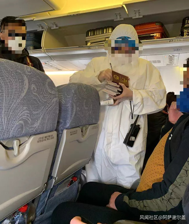 這真是讓我覺得心驚肉跳,因為在兩個小時的飛行過程中,乘客們並沒有測體温,而且其間空乘人員向乘客發了餐盒,也就是説,每個人都可能有短暫取下口罩的時間。