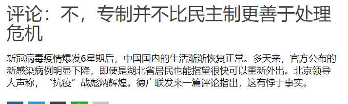 在輿論層面還有一個有意思的現象就是制度比較,中國這次交的答卷太好了,由於西方國家做的太差,連武漢前期對信息的隱瞞都不會着重説了,因為他們做的更差,有些甚至差到無以復加。你一定記得兩個月前這些報紙的頭條都是些啥。西方國家不約而同的開始了制度比較,由於攻守之勢異也,所以這些處在守勢的媒體開始了國情論,真相論,用他們那些下三濫的話術對抗鐵一般的成果,非常好玩。