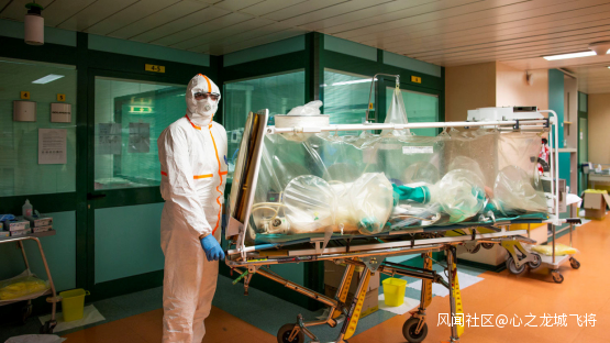 意大利,羅馬,身着防護服的醫護人員正在轉移一名新冠肺炎患者。