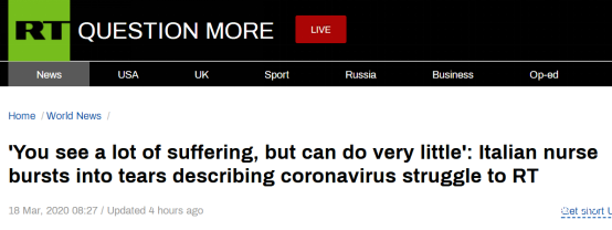 意大利護士:“你目睹很多痛苦,卻無能為力”來源:環球網