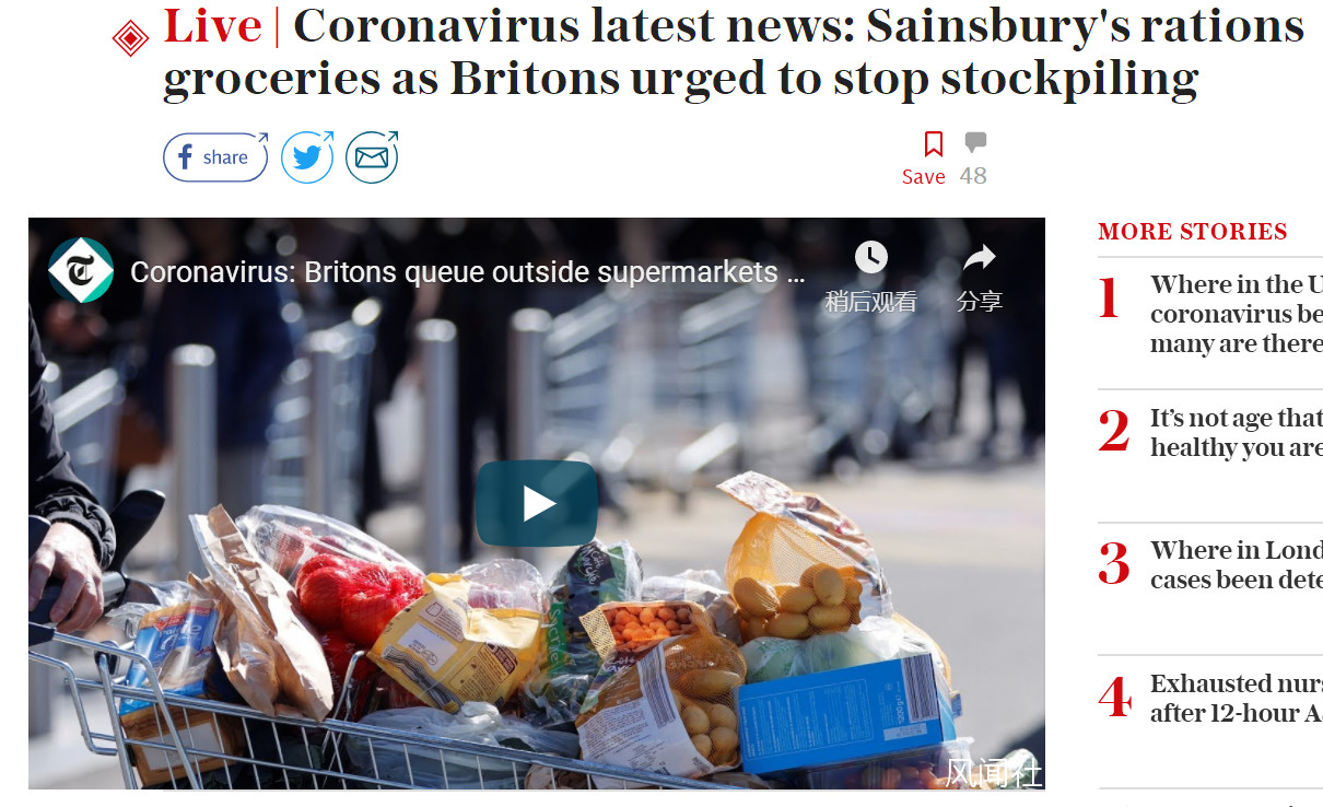 這促使塞恩斯伯裏百貨公司(Sainsbury’s)推出了老弱專用購物區。同時,購物者也將被限制在任何食品雜貨中最多買3種,最受歡迎的商品如衞生紙、肥皂和UHT牛奶最多買2種。