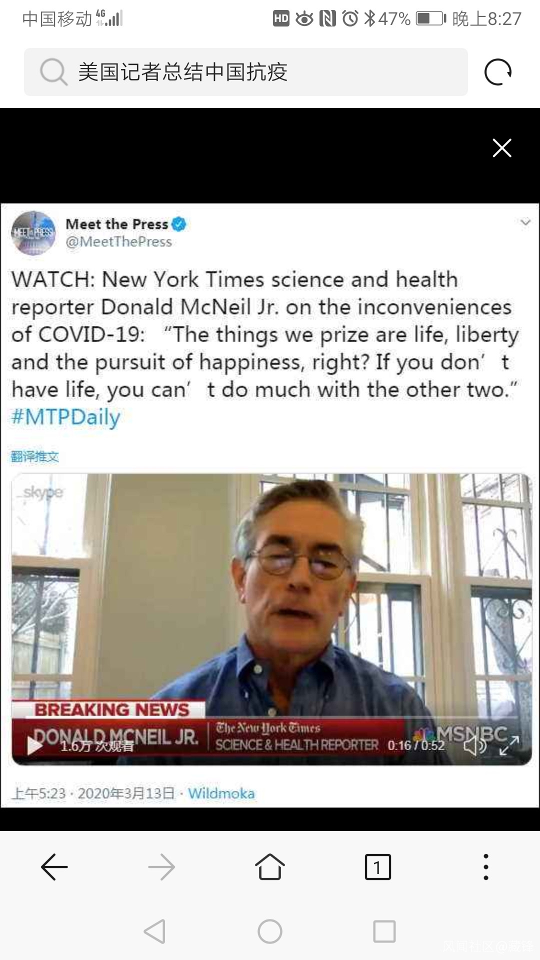 真的好記者長什麼樣子?我們也許不多見,但可以搜搜圖2中的這位,昨天看他接受採訪總結國內抗疫的成功經驗,一個外國人,比大多數中層幹部要有條理得多,分析問題直指要害,【封城只是基礎,追蹤才是防控成功關鍵,病毒感染髮現的越早,甚至無症狀就被精準分級隔離才能阻燃,説什麼光各回各家就能悶死病毒那是自欺欺人】