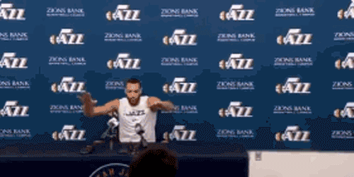 3月9日,爵士隊中鋒魯迪·戈貝爾接受完採訪後用手摸了面前的每一個話筒和錄音設備,然後笑着離開了現場;