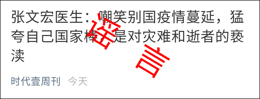 於是我們就看到了文章開頭的內容《張文宏醫生:嘲笑別國疫情蔓延,猛誇自己國家棒,是對災難和逝者的褻瀆》。