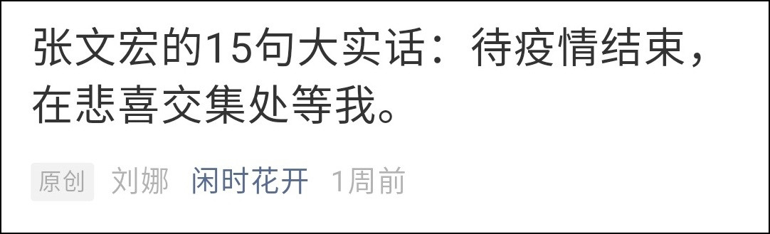 據查詢,上面的這一段話最早出自公眾號“閒時花開”發佈的文章《張文宏的15句大實話:待疫情結束,在悲喜交集處等我》,作者是劉娜。