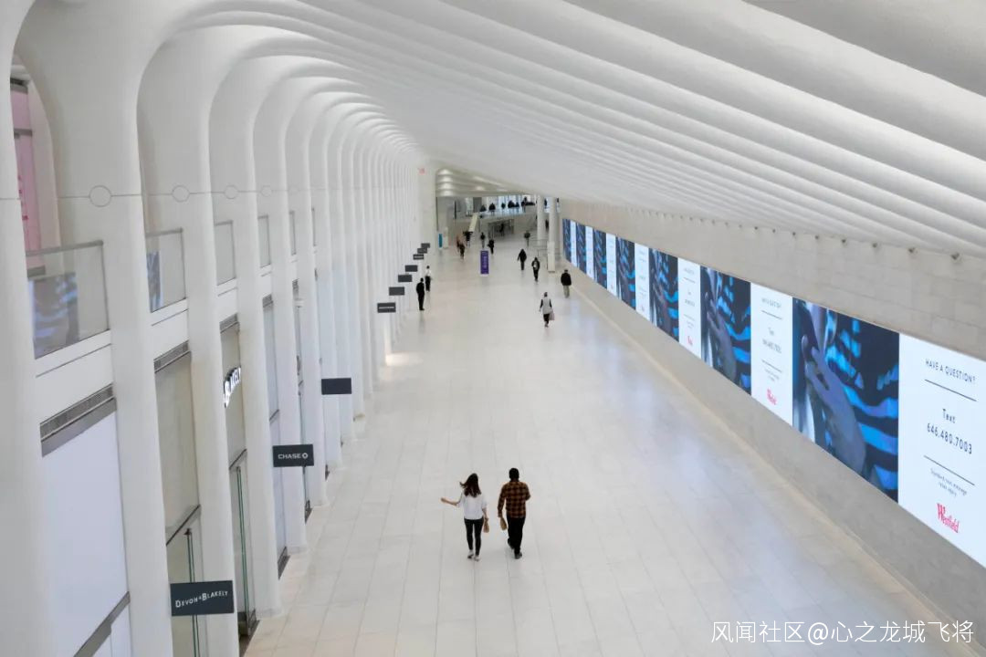 圖片説明:2020年3月16日,星期一,紐約,世界貿易中心交通樞紐的一條走廊前所未有得空曠。數以百萬計的美國人開始在家中工作 | Source: AP