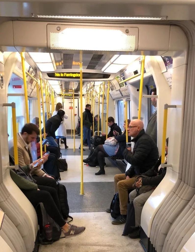 本週開始,英國很多機構開始鼓勵居家辦公。3月16日早高峯時段的倫敦地鐵明顯比往常人少。不過仍然無人戴口罩。徐楊攝影