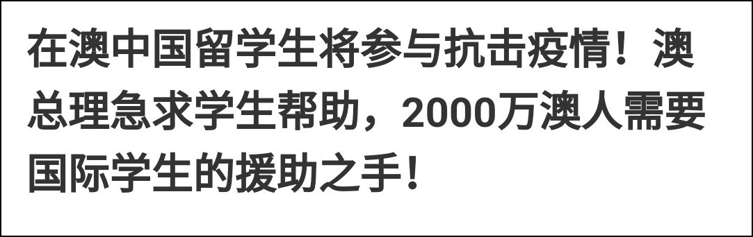 早前曾經禁止包括留學生在內的所有中國內地民眾入境的澳大利亞政府,在新冠肺炎疫情不斷蔓延的背景下,迫不得已向國際留學生求援了。