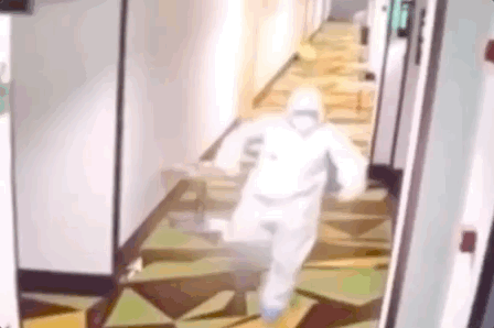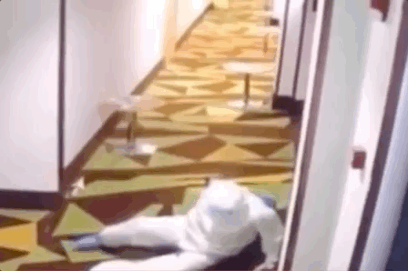 在武漢金銀潭醫院,一位醫生連續工作數天,因為過度勞累,在行走過程中整個人重重地摔倒在地。
