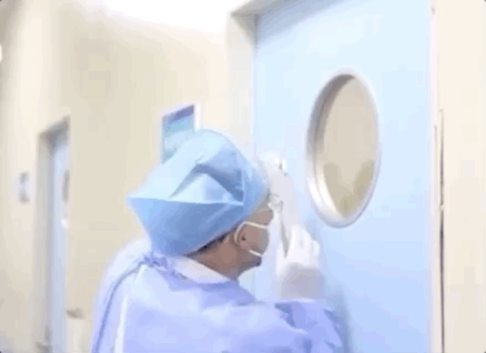 周醫生退後一步摘下口罩,在臨別時露出了自己的臉。