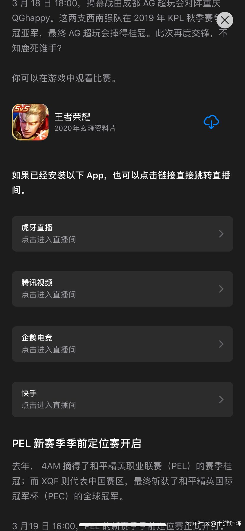 在App Store中,蘋果專門為KPL和PEL定製的賽事跳轉頁面