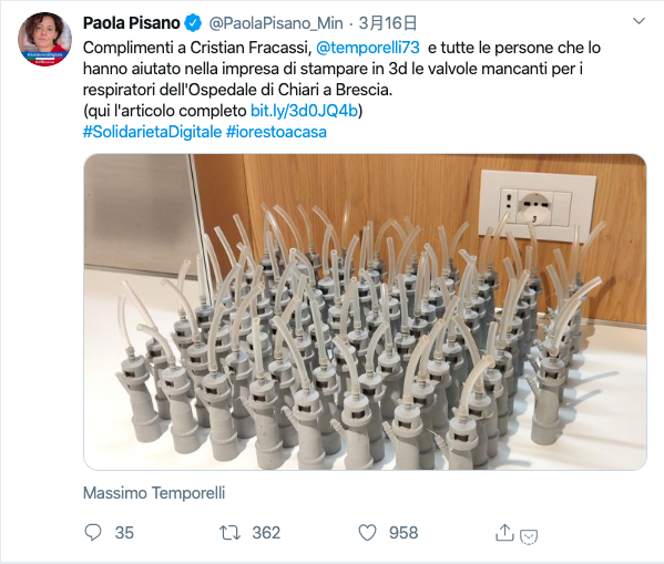 [5]意大利技術創新部長, https://twitter.com/PaolaPisano_Min/status/1239246094539915265