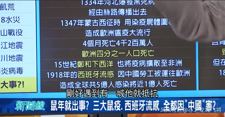 同樣想把“1918年大流感”的“黑鍋”扣給中國的還有台灣島內“綠媒”三立電視台,在其近日一檔節目中,“財經專家憲哥”也宣稱“1918年大流感”是前往歐洲的中國勞工帶去的。