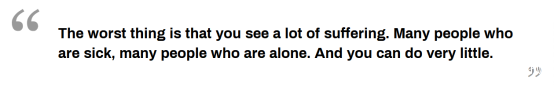 但羅瓦蒂説,治療新冠肺炎患者不僅是為了處理呼吸衰竭(等問題),“從感情的角度來講,面對患者也不容易”。“最糟糕的是你目睹許多痛苦。許多人生病,許多人無依無靠。你能做的卻很少。”