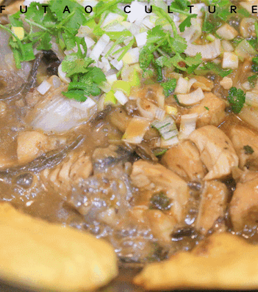 作為烹飪術語的“燉”,是指把食物原料加入湯水及調味品,先用旺火燒沸,然後轉成中小火,長時間燒煮的烹調方法。菜餚呈現出半湯半菜,質地酥爛,原汁原味,味道濃厚的特點。其中又分為:隔水燉和不隔水燉。