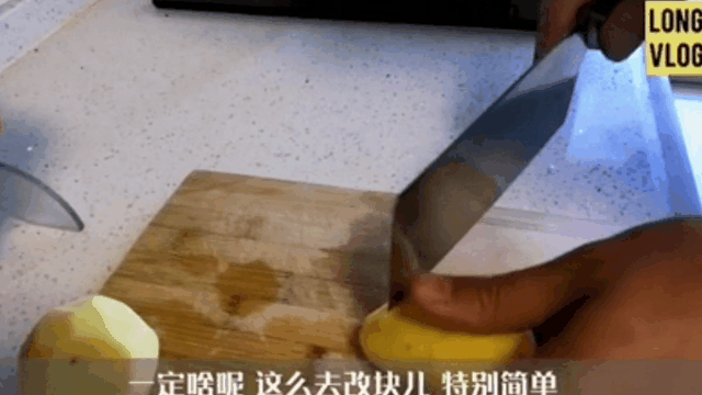 夏秋吃新白菜、新土豆、新茄子、新豆角,備菜也各有不同,豆角一定要把兩邊的“筋”摘乾淨,不然吃起來塞牙,茄子要切成滾刀塊,方便入味,而土豆的刀法不能像茄子一樣是硬生生的滾刀塊,要半切半掰,讓土豆與湯汁的接觸面變大,燉起來更“面”。下圖為東北著名美食博主樑龍帶來的東北切土豆表演: