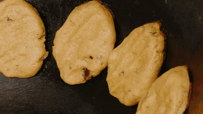 貼餅子是用玉米麪做的麪食,和成麪糰貼在鍋邊,跟燉菜一起出鍋,貼餅子上面香甜,底層焦脆: