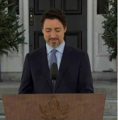 特魯多記者會開一半跑去拿外套。(圖源:Narcity)