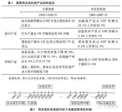 本次危機爆發之後,我們一直在思考這次危機可能延續的時間、可能產生的深遠國際影響和我們的對策。從2010年起,我們開始啓動對20世紀30年代大蕭條和本次國際金融危機的比較研究,邀請了中國人民銀行、銀監會、社科院、國務院發展研究中心、北京大學等單位的研究人員參加,這些單位都完成了十分出色的分報告,本文是此項研究的總報告。總的看,金融和經濟危機的發生是資本主義制度的本質特徵之一。工業革命以來,資本主義世界危機頻繁發生,20世紀30年代大蕭條和本次國際金融危機是其中蔓延最廣、破壞力最大的兩次,它們都是資本主義內生矛盾積累到無法自我調節程度後的集中爆發。一、研究的目的、方法和基本邏輯1.這次研究的主要目的,是試圖通過歷史比較來理解過去,推測未來可能發生的變化。這樣做的主要原因是:我們的工作任務之一是應對本輪金融危機,我們希望通過歷史比較使自己的工作獲得主動性。當我們開始進行這項工作後,立刻產生了強烈的好奇心,對結論的好奇使我們對這項研究工作的興趣全面上升。2.在一些自然科學領域,理解和判斷往往在實驗室進行,而社會科學沒有研究實驗室①,當統計數據不充分、研究對象又十分泛化時,替代的研究方式可能是進行歷史比較。正如在自然界存在着氣候變化長週期一樣,在經濟社會發展領域,只要時間的跨度足夠大,也會發現歷史的重複現象或者相似之處②。令人欣慰的是,這兩次危機之間實際間隔約80多年,如果加上上次大蕭條之前的歷史背景時間,可用於比較研究的時間超過百年。這一百多年的時間內,發生了兩次重大的技術革命,人類也經歷了兩次最大的繁榮與蕭條的更迭,這使得這個寶貴的時間成為進行比較研究最難得的實驗場所。(①自然科學中,一些學科也無法通過實驗室驗證,比如宇宙天體學、氣候學、生命科學等。②康德拉季耶夫1925年提出,資本主義世界存在以固定資產投資為驅動的大約45~50年的經濟週期。熊彼特1939年提出,以技術創新為驅動存在大約48~60年的經濟長週期。範杜因在1979年的《經濟生活中的長波》中提出,技術創新具有壽命週期,並將長技術週期分為四個階段。弗里曼在1982年的《失業與技術創新——關於長波和經濟發展的研究》中,着重從技術創新擴散與就業關係的角度對長技術週期進行了分析。)3.本項研究的基本邏輯是歷史的週期率。我們認為,週期性是歷史變化和自然界的本質特徵,也是資本主義制度的重要特點。歷史在時間跨度足夠長時會不斷重複自己,經濟社會發展的週期率首先表現為繁榮與蕭條的交替,但這種交替只是分析問題的起點①。本項研究的主要任務,是試圖發現在兩次繁榮蕭條之中那些最引人注目的事件發生的先後順序和相似程度,更準確地説,這項研究是試圖理解兩次危機發生前技術和經濟背景的類似性,刻畫在這樣的背景下政府行為和大眾心理的特徵,描述兩次危機的宏觀發展軌跡,從而為應對危機的決策提供依據。(①參見《資本論》關於經濟週期的描述。)4.歷史重複自己有線性方式,也有非線性方式,有符合邏輯的精準變化規律,也有邏輯不清的意外變化,甚至還有很多無法解釋的歷史困惑,這一切既是進行這項研究的迷人之處,也是它的難點所在。在下面的報告中,我們將按照馬克思主義的分析方法,歸納兩次危機的不同點,試圖總結出兩者的共性特點,並得出初步的政策結論。由於歷史事件和比較的對象極為宏觀,可以用於翻閲資料和進行數據比較的研究時間十分有限,我們的描述選擇了較為粗略的方式,描述的重點是“是什麼”而不是“為什麼”。即便是對“是什麼”的描述也十分困難,因此這項研究大綱僅是更深入研究的起點。二、兩次危機的區別點在提煉兩次危機的共同點之前,十分有必要看到兩次危機存在的巨大區別。非常明顯,兩次危機對人類社會造成災難的程度不同。從危機爆發初期的情況看,1929年大蕭條造成的經濟總量損失和商業破壞要大大超過本次金融危機。但本次金融危機的後續發展演變日趨複雜,美國失業率連續兩年多居高不下,持續維持在9%上下,房價仍在低位徘徊,復甦過程曲折反覆;歐洲主權債務危機影響不斷深化,經濟社會政治產生共振,負向反饋,不確定性和風險持續提高。總的來看,這次危機儘管短期殺傷程度要輕,但調整可能需要更長時間,深度影響難以估計。歸納起來,兩次大危機有幾點主要的區別:1.人口結構不同。人口結構特別是年齡結構對經濟社會發展具有十分重要的影響,對政府制定公共政策也會產生重要的作用。大蕭條期間的人口年齡較輕,中等收入者比重偏低,受教育程度也不高。而本次危機發生的時候,人口的年齡已大大提升,特別是發達國家普遍進入老齡化社會①,中等收入者比重上升,受教育程度提高,福利化制度和人口年齡因素造成勞動力的市場適應性減弱,人們更樂於維持現狀而不是變革。(①以美國為例,1929年65歲以上人口占總人口的5.3%,2007年則佔12.6%(數據來源:美國國家統計局)。)2.技術條件不同。大蕭條發生在第二次技術革命之後,而本次危機發生在第三次技術革命之後,在兩次技術革命之後,人類技術進步的程度大大提高。特別是在軍事領域,核武器的發展使得主要國傢俱有相互制衡的能力,鮮有國家寄希望於通過世界戰爭解決國家利益爭端。相反,核力量造成的“恐怖