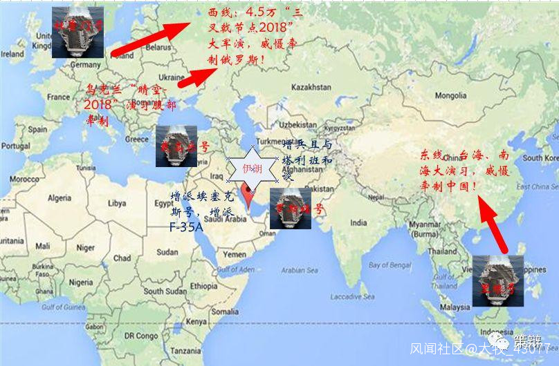 事實上,美軍的全球行動與部署,很明確的在針對中、俄、伊。這2個月大的演習訓練和兵力調派均是如此。世界島——亞歐大陸,可分為東、中、西三線。