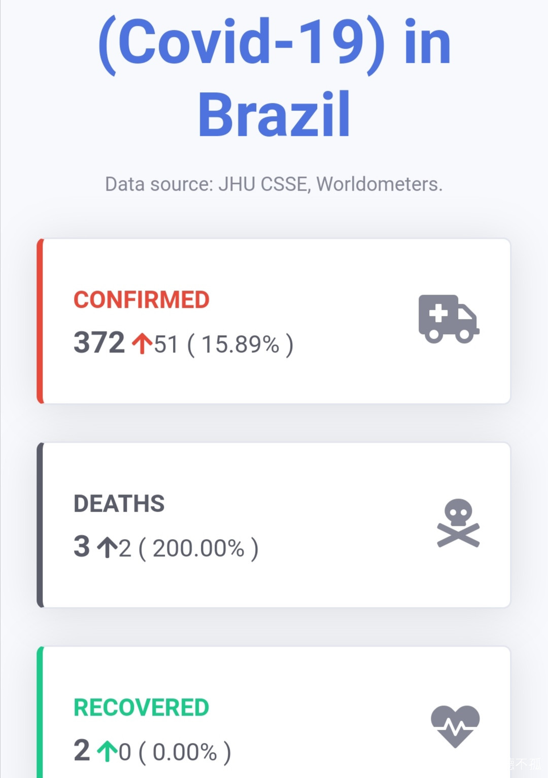 巴西最新疫情,截圖自corona. cloud