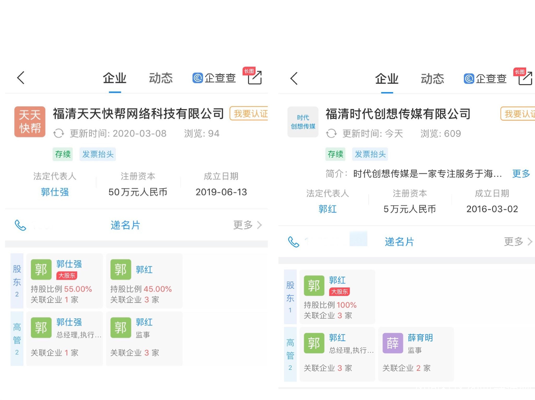 兩家公司法定代表人均向新京報記者承認,這兩家公司存在關聯,且均為一人在負責運營打理。 工商註冊信息截圖