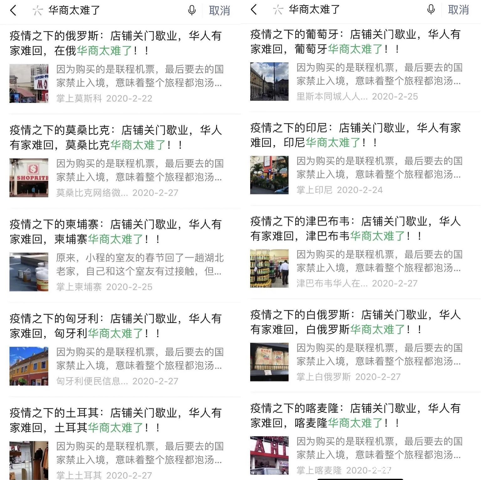 “華商太難”文章刷屏,被質疑係批量生產,製造海外疫情恐慌情緒。 微信公眾號文章截圖