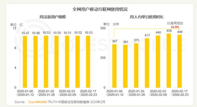 直播吃飯、直播購物、直播做飯、直播健身等等,直播經濟在疫情期間可以説是引發了全民參與,甚至一些曾經高度依賴線下場景的行業也紛紛參與到直播大軍當中。據QuestMoble數據顯示,疫情以來,網民對移動互聯網依賴加大,互聯網的使用時長比日常增加21.5%。