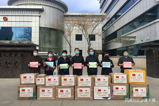 “千里同好,堅於金石”、“UNISNOUSVAINCRONS(團結定能勝利)”這是寫在中國政府援法醫療物資上面的中法兩國名言,配以寓意吉祥的鳳凰和象徵和平的鴿子圖案,體現了中法共同抗擊疫情,護佑中法兩國友好關係。近一段時間,隨着新冠肺炎的全球蔓延,中國各界也源源不斷的向國際社會進行防疫抗疫物資援助。