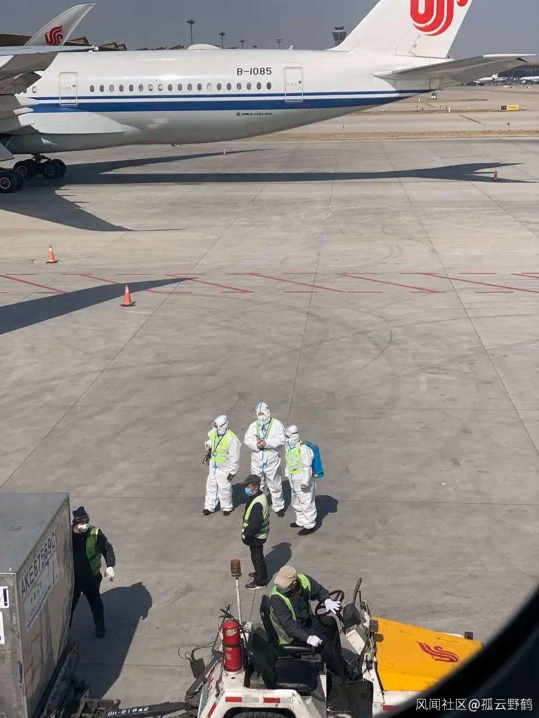 我在3月15日落地北京首都機場,國內機場的防護做得特別嚴。當時國外的航班特別多,需要分批下機,先是西班牙、意大利等疫情嚴重的國家航班,接着才是我們。我是早上8點50分落地的,11點才下飛機。抵達之後,在機場一路填表,測體温,全程有專屬通道。