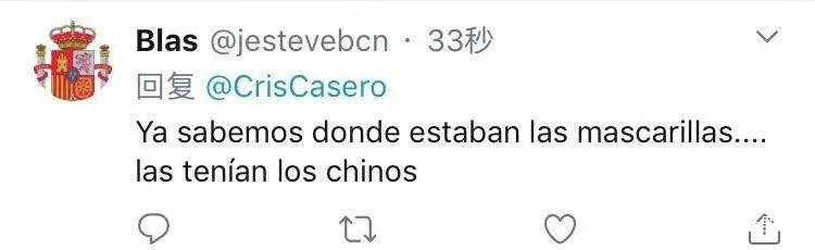 “我現在知道我們西班牙的口罩都去哪了,都在中國人手裏。”