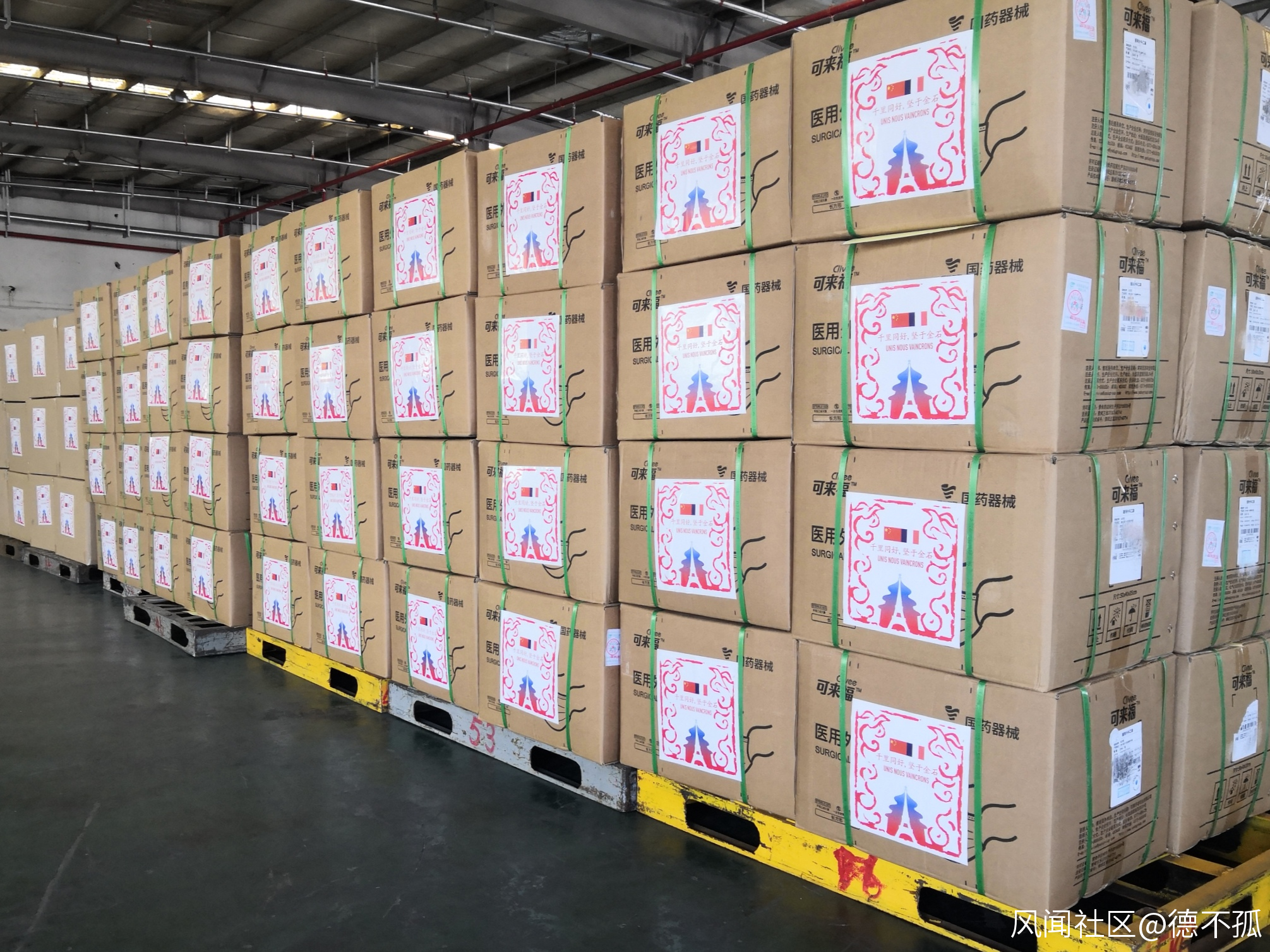 2020年3月18日,在法國因疫情實行全國隔離的次日,中國政府向法國提供的醫療物資援助運抵巴黎戴高樂機場。