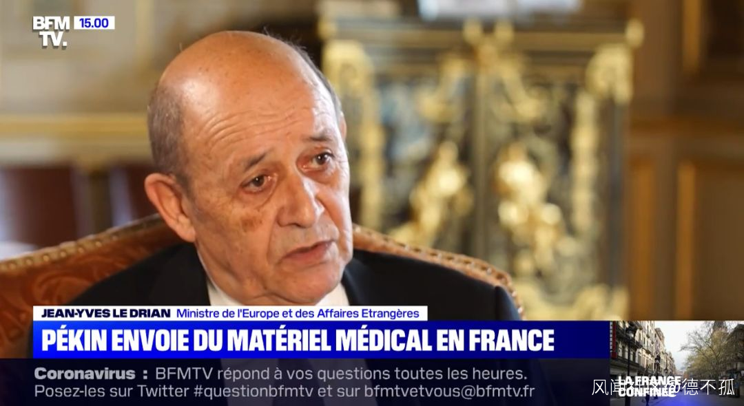 他表示,中國向法國提供醫療物資援助,與法國團結抗疫,“中方的舉動值得稱讚”。
