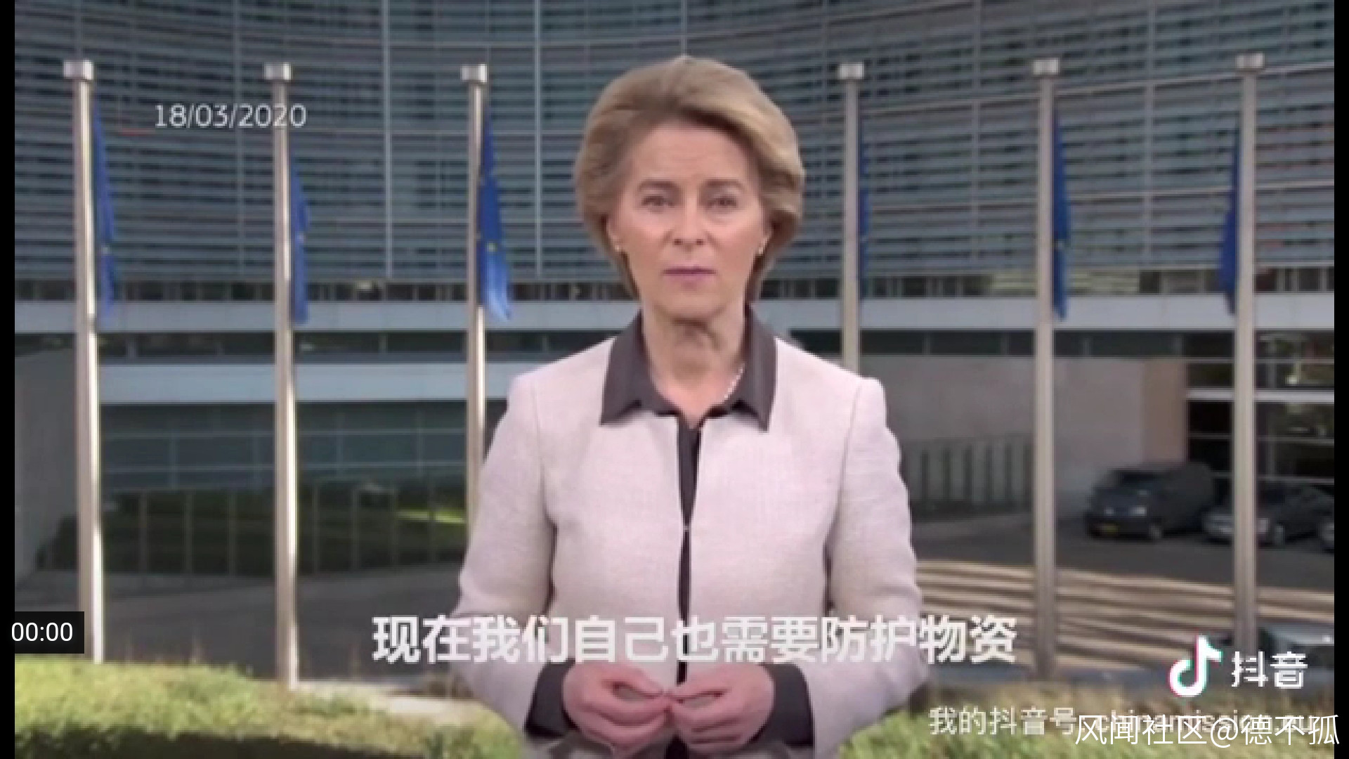 當地時間3月18日,馮德萊恩在歐委會官方社交媒體賬號上通過視頻發表講話,感謝中方向歐盟提供抗疫支持。(歐委會社交媒體頁面截圖)