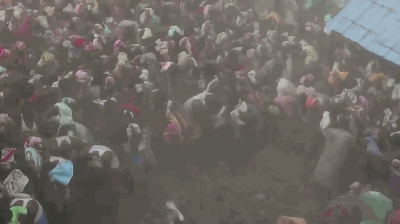 人們互相往身上扔牛屎