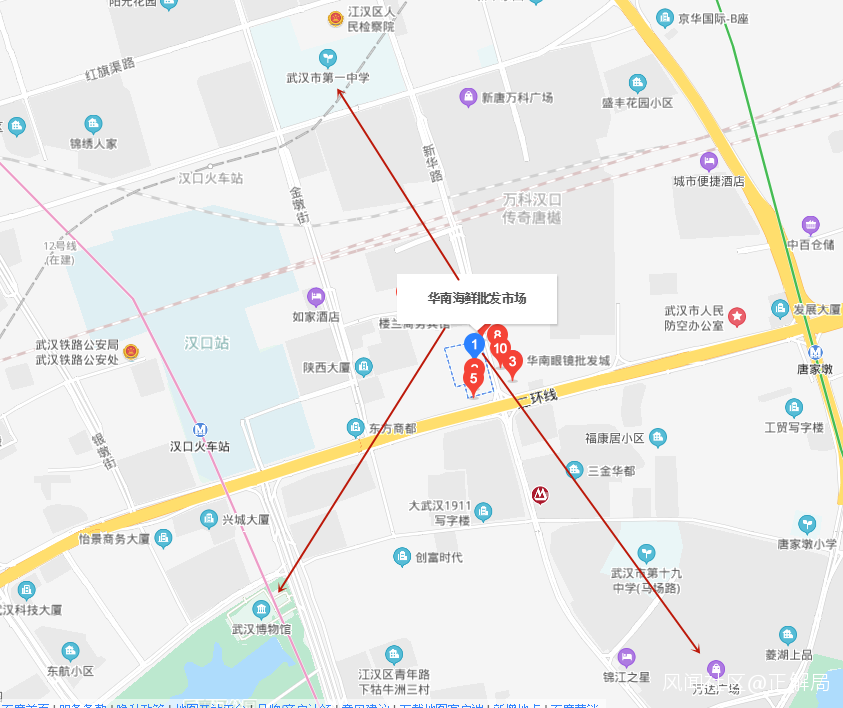 而華南海鮮市場方圓一公里左右,還包括了武漢市第一中學、武漢博物館、萬達廣場等人流密集場所。