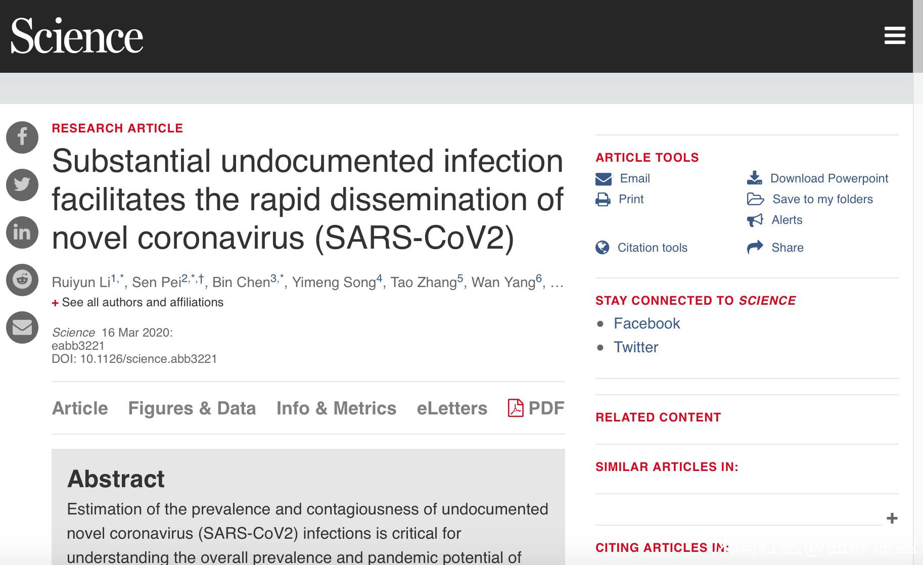 以上結論來自當地時間3月16日國際頂級學術期刊《科學》在線發表的論文 “Substantial undocumented infection facilitates the rapid dissemination of novel coronavirus (SARS-CoV2)”。研究者通過計算機模型發現,未記錄的新冠病毒感染者是造成新冠疫情迅速蔓延的主要原因,也是疫情初期難以防控的核心。