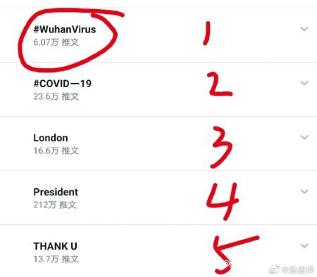 一段時間來,居然還“小有成績”!有細心網友發現,在推特上,“武漢病毒”已經被刷成了全球網絡熱搜詞。
