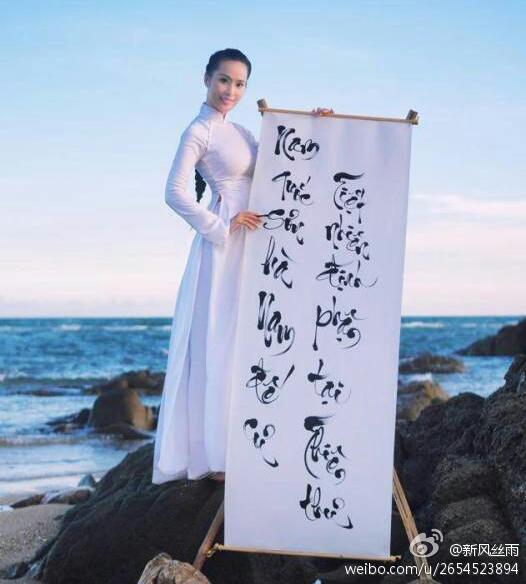 最後來個越南女模黎氏梅,在中國南沙羣島附近打出字幅,寫的是李朝時代李常傑《南國山河》詩的前兩句:“南國山河南帝居,截然定分在天書”。宋越熙寧之戰時,在如月江、富良江一帶交戰,李常傑為鼓舞越軍士氣寫了這首詩。此詩現在專門運用在對中國抗議的各種場合,當年“戰勝中國”的遺蹟,李太祖廟,還劍湖,都成了每次對中國抗議的必經之地。