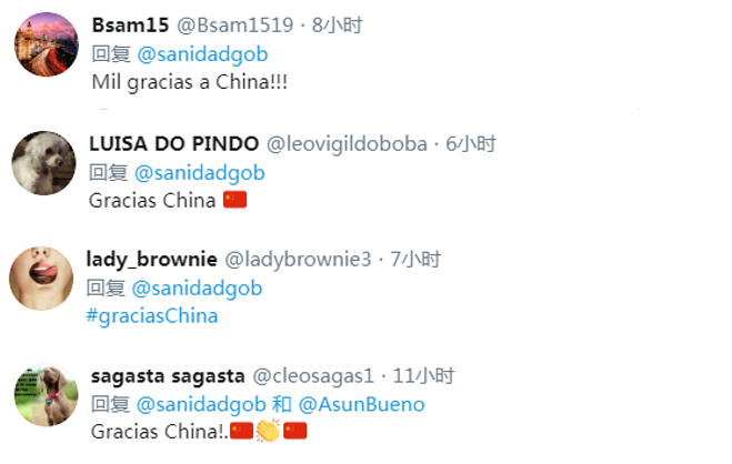 不少網友説着“Gracias”(西班牙語:謝謝)、“謝謝中國”。↓