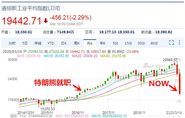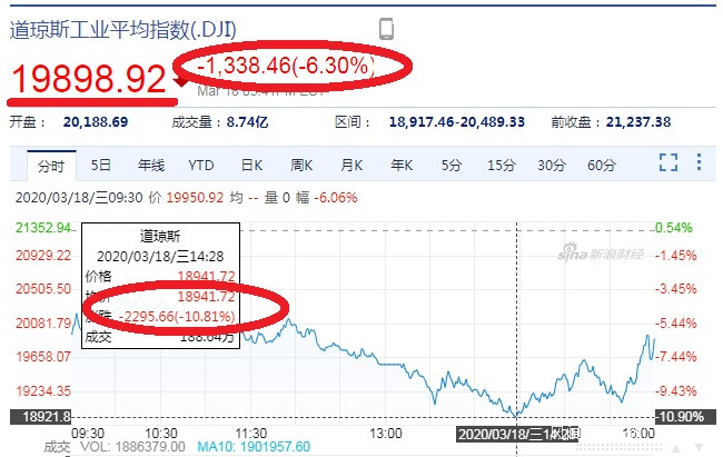 在中美經濟斷交幽靈之下,美股跌穿20000點,心理關口突破,