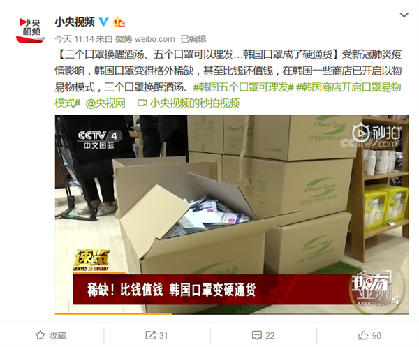 據央視報道,韓國口罩變得格外稀缺,甚至比錢還值錢,在韓國一些商店已開啓以物易物模式。在大田市一家解酒湯店,顧客如有KF80或KF94醫用口罩,就可換一份醒酒湯。