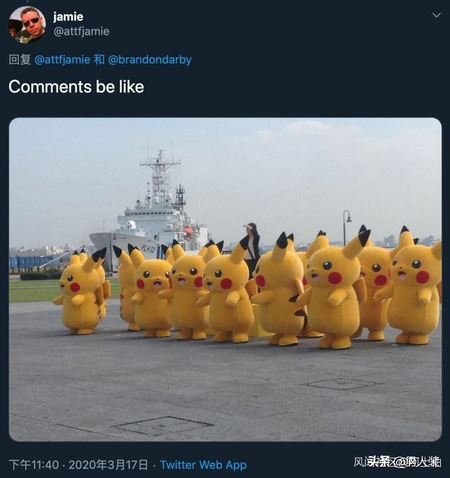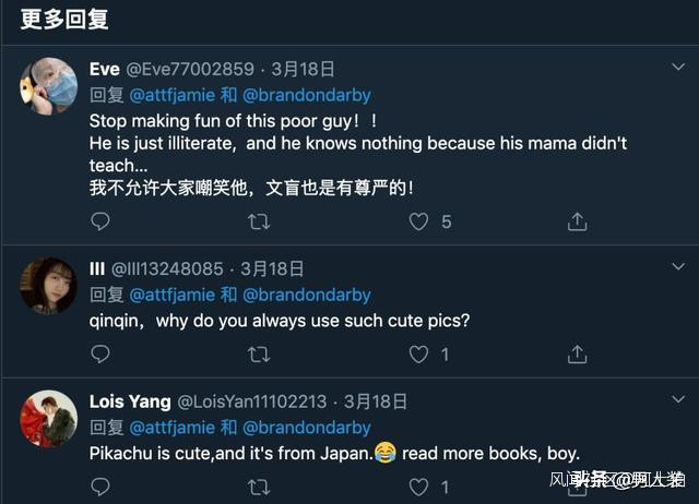 可能是看BD老師太慘了,有一位網友@jamie在此刻站了出來吸引火力。他覺得,中國網友的回覆過於單調,都是文字,難道就沒有表情包嗎?